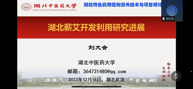 12月18日,由湖北省科学技术协会和江汉大学科学技术协会联合举办,生命科学学院承办的2022年湖北省科协海智项目“湖北特色药用植物海外技术与项目研讨会”在线上召开。