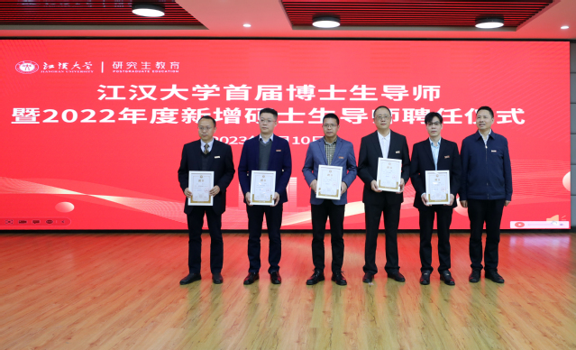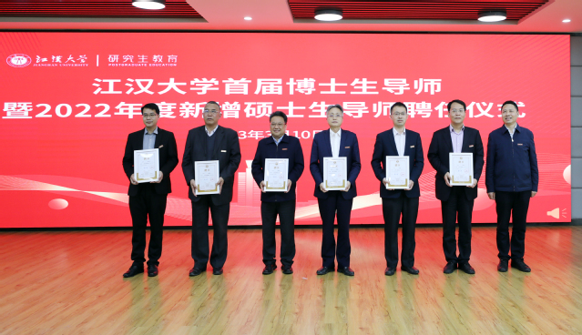 校学位评定委员会主席、校长景新华为首批博士生导师暨2022年度新增硕士生导师、专业学位硕士生行业导师分别颁发聘书。副校长李卫东主持聘任仪式。研究生处处长刘继延宣读了博士生导师、硕士生导师聘任文件。